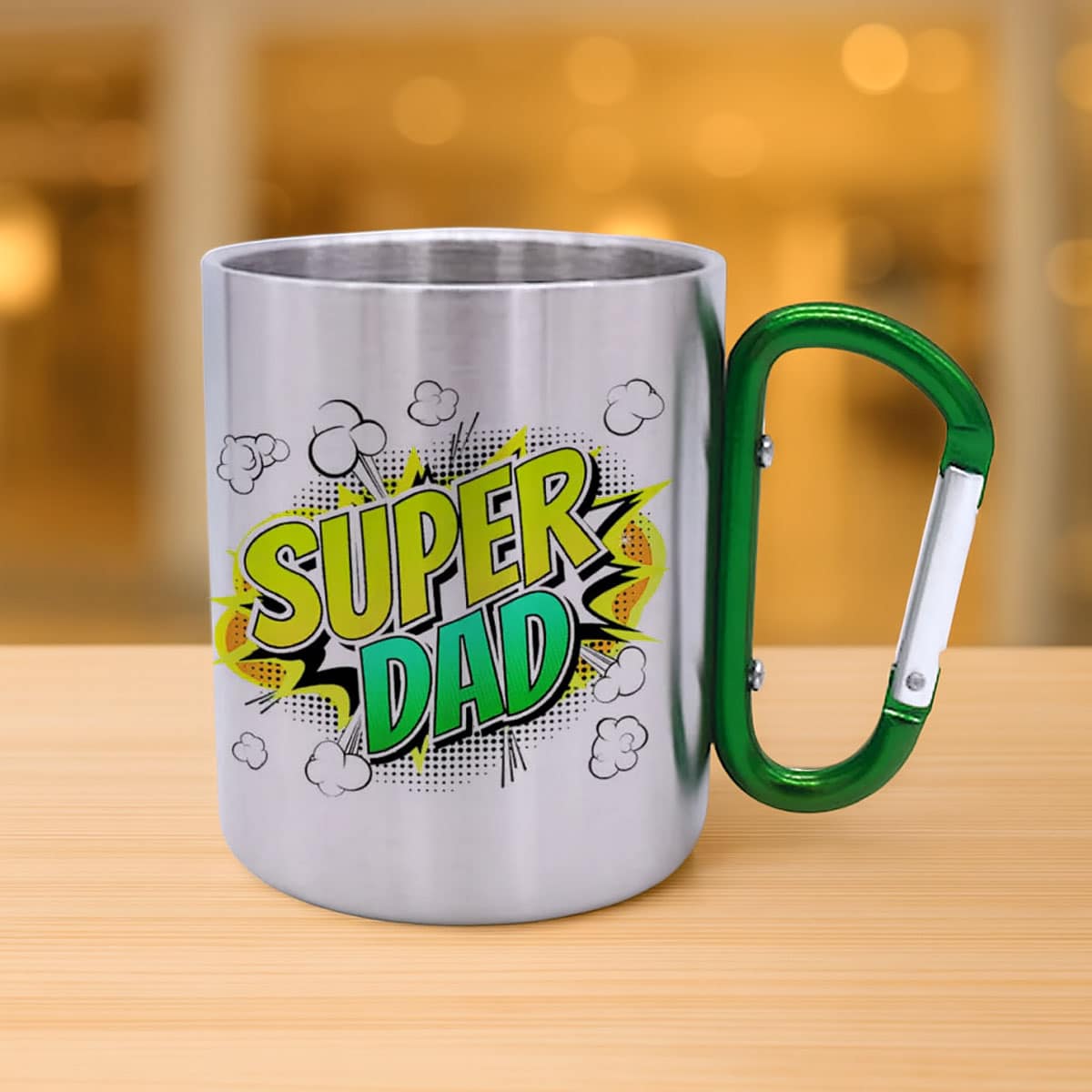 Egyedi fényképpel, felirattal, logóval kérhető ezüst fém karabíneres bögre