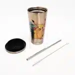 Egyedi grafikával kérhető ezüst acél duplafalú latte pohár -Szívószállal, tetővel