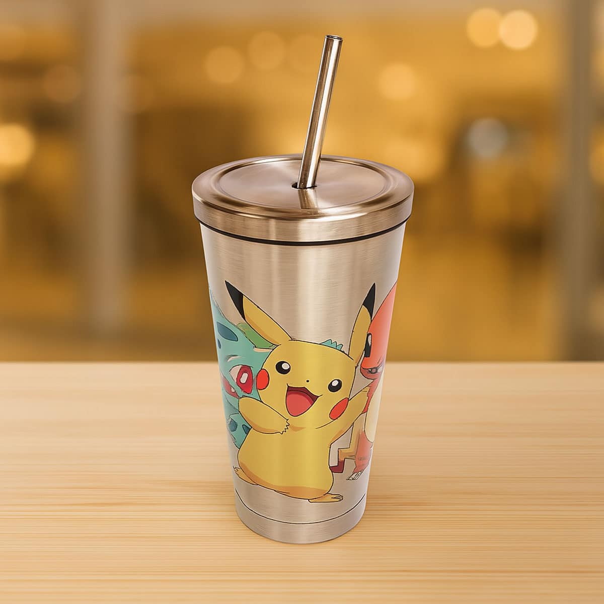 Egyedi felirattal, logóval, grafikával kérhető fém dupla falú latte pohár szívószállal