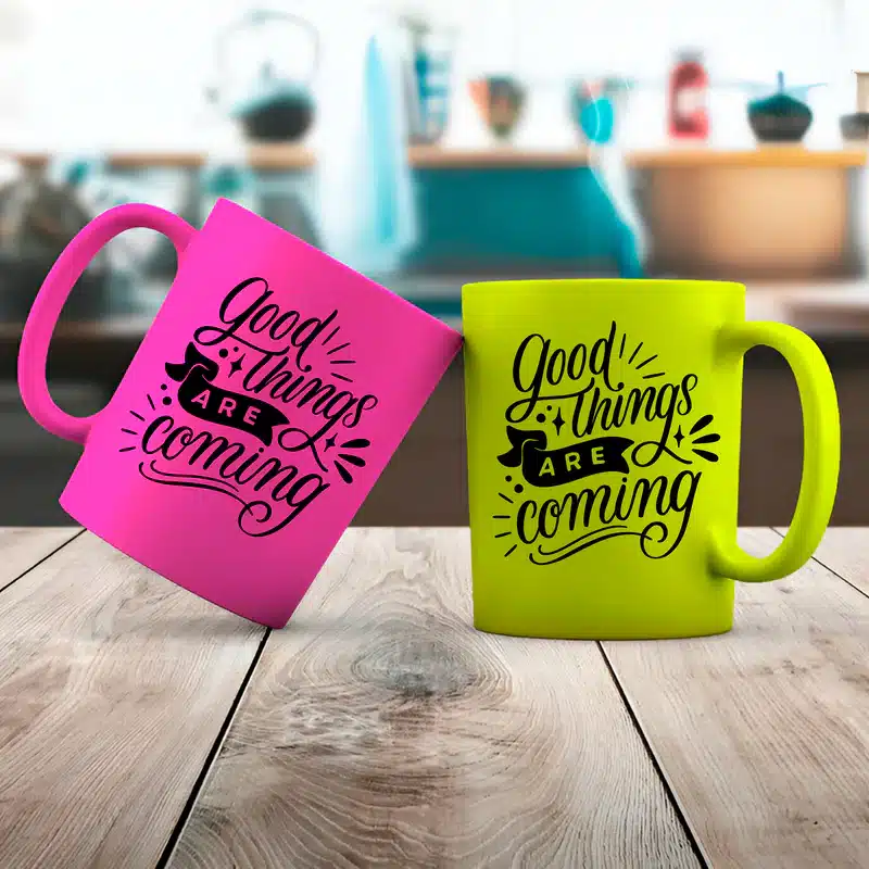 Egyedi felirattal, logóval kérhető Neon kerámia bögre.