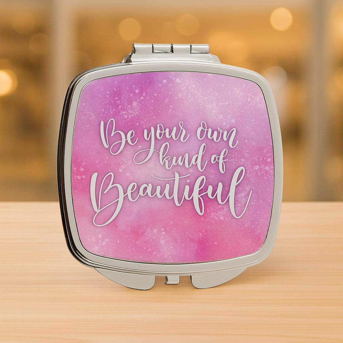Egyedi grafikával kérhető, négyzet alakú kinyitható sminkes tükör
