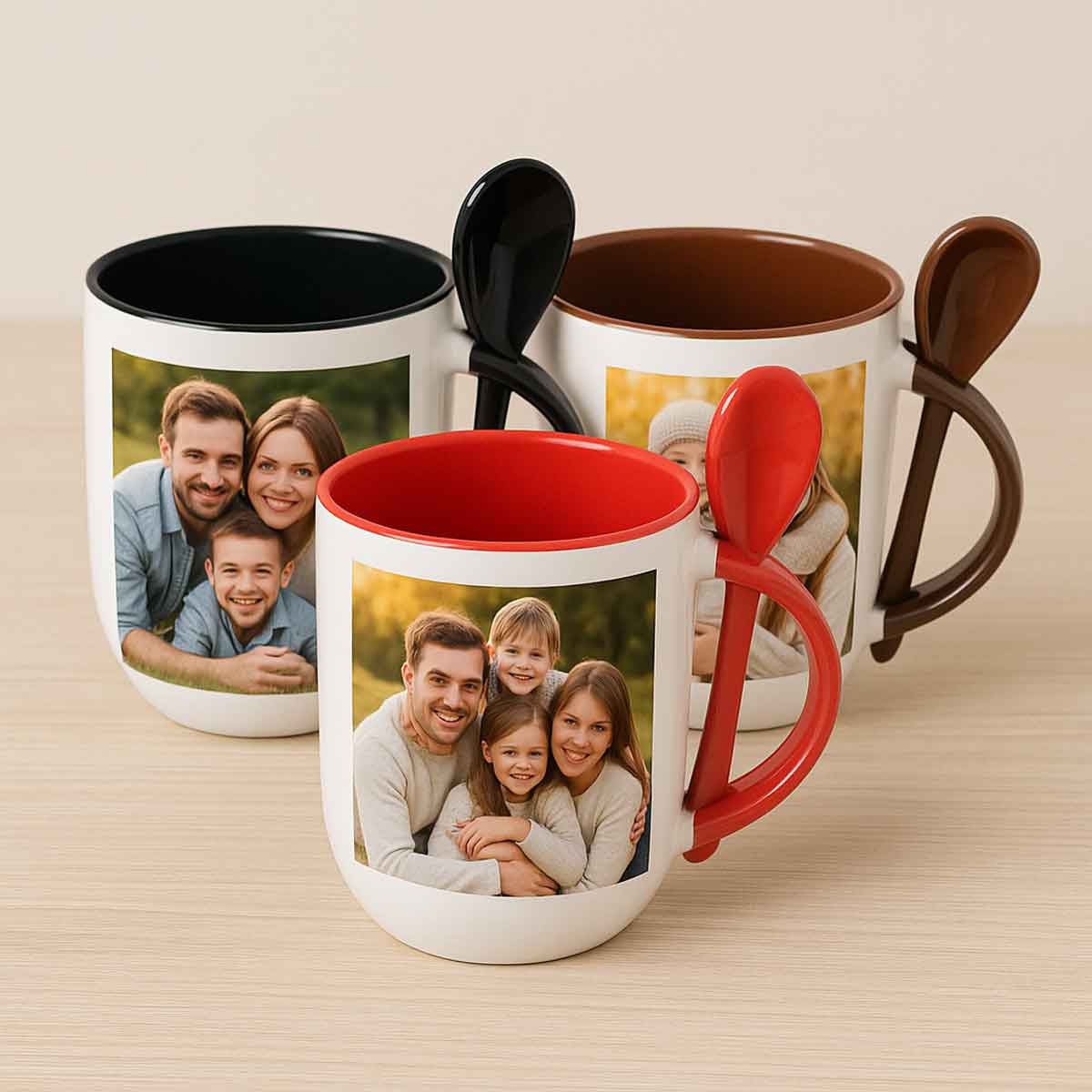 Egyedi fényképes bögre színes belsővel, kanállal