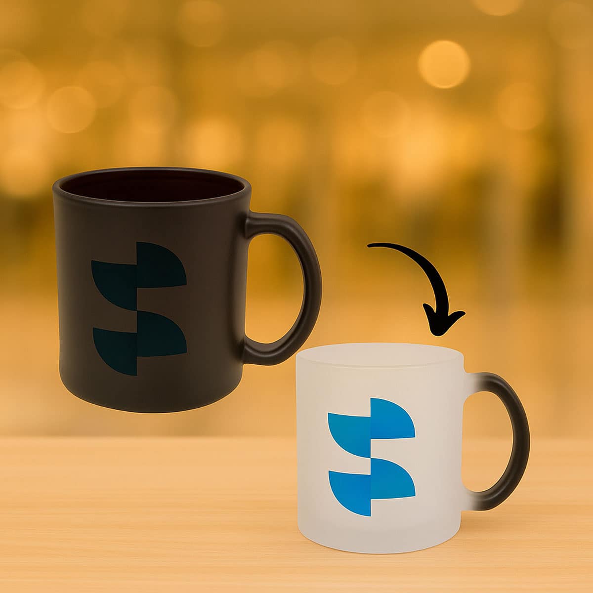 Egyedi felirattal, logóval, fényképpel kérhető színváltós üveg bögre. Hő hatására pl. forró folyadék a termék alap színe kivilágosodik és így jobban láthatóvá válik a bögrén található grafika. Alapban halványan látszik csak az egyedi grafika